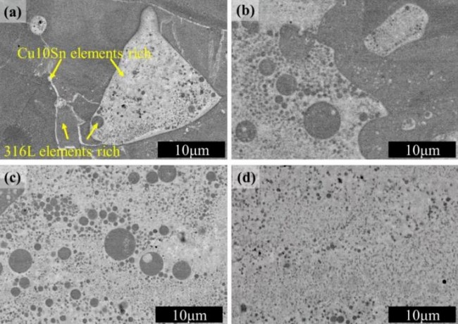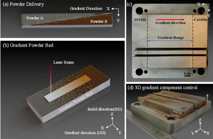 浙江工业大学激光先进制造研究院分享了一项激光粉末床熔融(LPBF)增材制造技术制备的钢/铜多材料研究成果。该研究成果来自于北京科技大学张百成团队,研究了激光粉末床熔融(LPBF)制备的Cu10Sn-SS316L(青铜-奥氏体316L不锈钢)成分梯度合金的显微组织和力学性能,实现了纳米级铁颗粒的弥散分布控制。相关研究成果以题为“Laser powder bed fusion of immiscible steel and bronze: A compositional gradient approach for optimum constituent combination”的论文发表在材料学TOP期刊《Acta Materials》上。