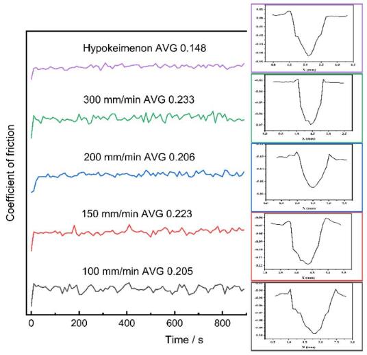 (a)100 mm/min;(b)150 mm/min;(c)200 mm/min;(d)300 mm/min