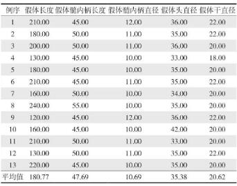 表3 假体数据 (mm)