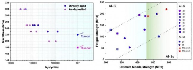 为此,季华实验室金属增材制造技术与装备研究团队长期致力于高强铝成分设计、工艺优化及部件制造等应用基础研究和技术开发,并开展了含Sc高强铝的疲劳强度变化规律及其主要影响因素分析工作,取得了重要进展。