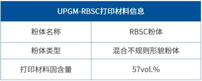 在PEP 技术中,采用基于蜡基体系的碳化硅颗粒喂料(UPGM-RBSC),其粒径为2-4mm的不均匀颗粒,打印材料固含量为57vol.%,具有高强度、高硬度、高热导率、高化学稳定性等优异性能,可支持客户自定义开发。