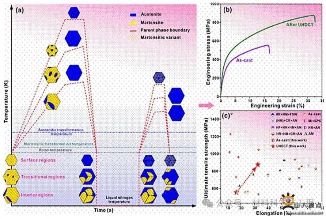 - 超快速退火和深冷处理工艺:通过这些先进的热处理工艺,团队显著提高了TRIP型双相高熵合金的力学性能,为制备高强度和高韧性的高熵合金开辟了新途径。