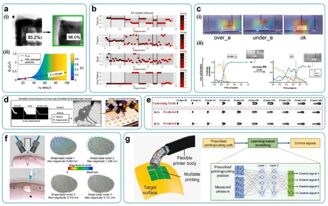 生物墨水作为生物3D打印的主要元素,是保证BPP免疫、组织和功能特异性的重要基础。生物墨水通常包含细胞和生物材料。AI技术可以应用于这些过程中的每个UO,以加速BPP个性化生物墨水的设计和生产(图5a)。