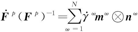 式中Fe为晶格拉伸和刚性旋转的弹性变形梯度,Fp为晶体内部滑移的塑性变形梯度,与滑移速率的关系可表示为