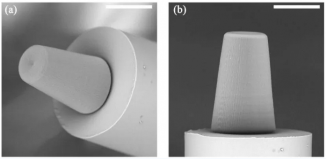 在微透镜的制造过程中,清洁的单模光纤尖端首先浸入光敏树脂中,然后采用25倍油浸物镜聚焦飞秒激光脉冲,逐层扫描打印,达到理想的质量与精度。研究结果显示,使用这种方法后,光束的强度分布能够有效从高斯分布整形为目标的“甜甜圈”分布。这一转化过程的成功不仅验证了微透镜设计的有效性,也为光束整形技术的应用提供了新的可能性。