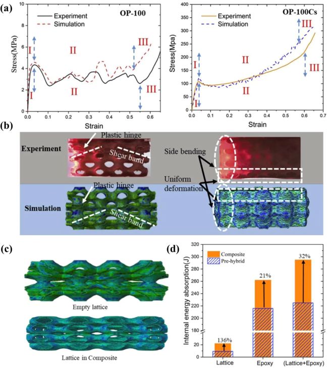 图4.空心晶格与复合体系的数值模拟和实验结果对比分析