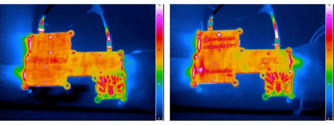热成像对比图:CP1(左)与AlSi10Mg(右)材质的冷板。