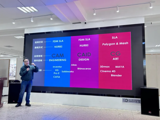 为助力产品设计专业学子把握行业前沿动态,深化产教融合实践,近日,浙江工商大学艺术设计学院(ADC)特邀浙大城市学院怀卡托大学联合学院张帆老师,开展“面向消费级3D打印的工业设计”实务精英讲座。本次讲座围绕3D打印技术演进、工艺应用、设计革新三大模块,为师生呈现了一场兼具行业高度与实践价值的专业分享。