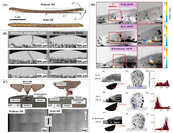 - 磁场:通过稳定熔池和驱动流动,有助于气泡逸出和抑制气孔形成。