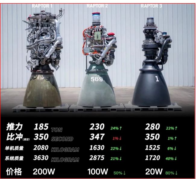 猛禽系列发动机的迭代核心聚焦于“减重降本、提推增效”,各代核心参数差异显著,具体如下: