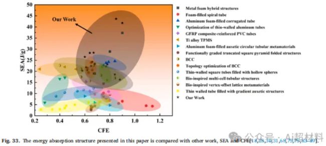 (4)集成打印技术显著增强了结构的能量吸收能力。三种结构的SEA分别提升了85.1%、82.5%和21.9%,较低的峰值力使其 CFE 更高。本研究提高了结构的能量吸收效率,并拓展了其在汽车、航空航天和海洋工程领域的应用潜力。后续工作将聚焦于爆炸冲击测试,并改进Gibson-Ashby模型以预测多孔结构在冲击下的能量吸收性能。