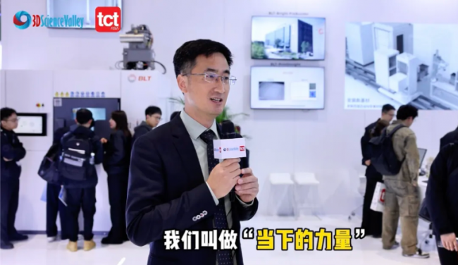 在采访中,铂力特副总经理贾鑫详细介绍了全球首发的具有全新功能的BLT-S400金属增材制造设备。