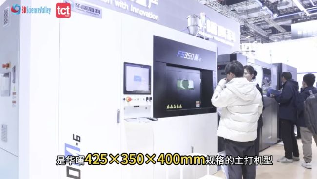 华曙在本届TCT亚洲展展示了两项新技术:一个是光束整形技术,一个是金属烧结打印。这两个技术分别应用在华曙的金属3D打印设备和尼龙3D打印设备上。光束整形技术华曙已经研究了好几年,主要是通过提高激光器功率,让光斑的能量更大更足,再结合大层厚,以及环形光斑与高斯光斑的配合使用,既保证细节打印质量,又提升打印速度。比如展台上这台FS350M设备,是华曙425×350×400mm规格的主打机型。通过配置四激光与环形光斑,配合的120微米层厚和高功率激光器,3D打印不锈钢的速度比原来提升两倍以上,大幅降低了成本。